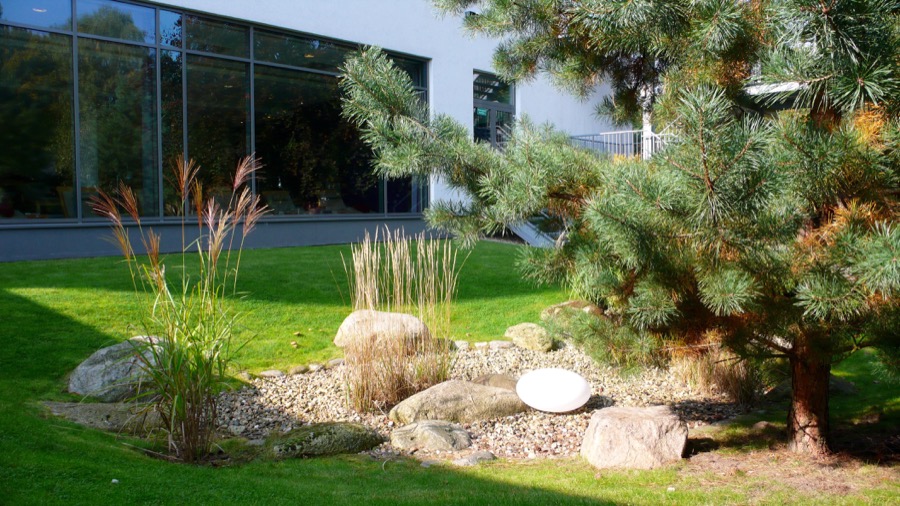 Direkt daneben – in der textilfreien Zone – befindet sich der Saunabereich mit großer Außenanlage. Hohe Gräser, die die Rasenfläche zieren. Ein kleiner Teich, umgeben von vielen Findlingen, erinnert an eine Wiesenlandschaft. Genau das war Uhlenhorst früher. Eine ländliche Wiesenlandschaft, bevor es entwässert, aufgeschüttet und bebaut wurde.