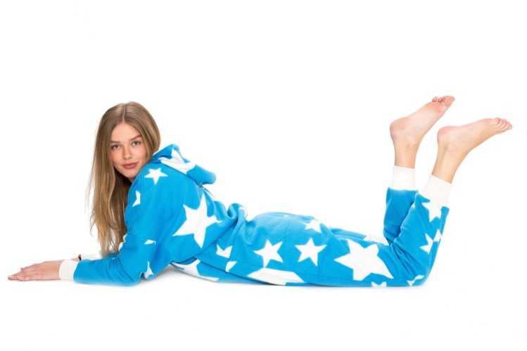 Schnell genäht und fertig ist der Jumpsuit mit den weißen Sternen!
